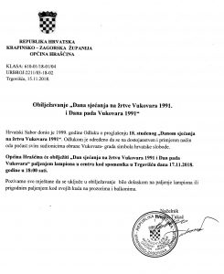 | 16. studenoga 2018. Obilježavanje “Dana sjećanja na žrtve Vukovara 1991. i Dana pada Vukovara 1991”